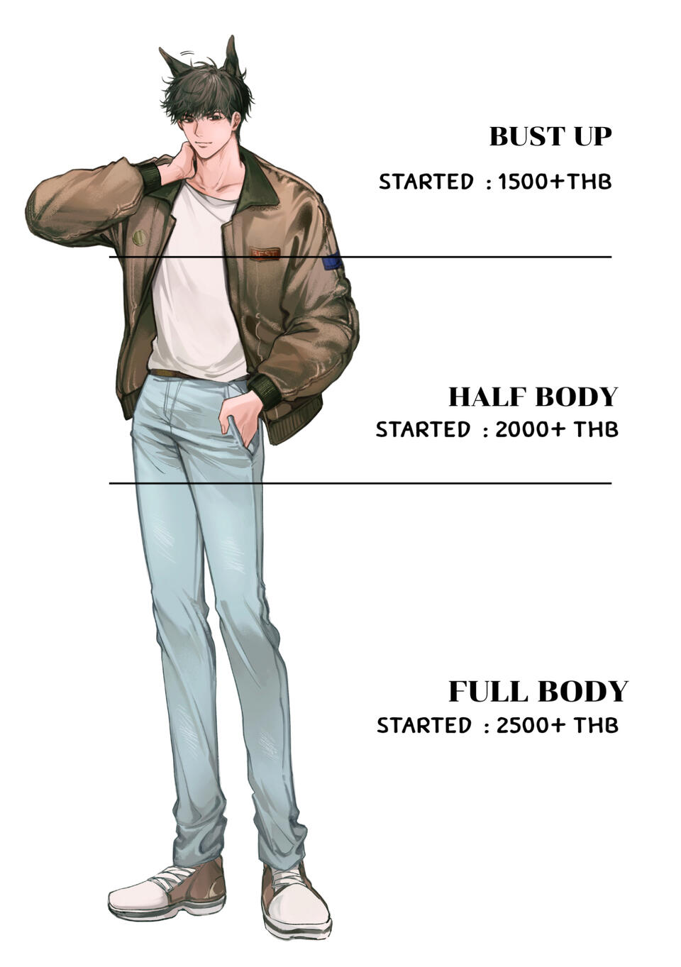 ราคาดังกล่าวคือราคาเริ่มต้น ของงานประเภท Full color ของ 1 ตัวละคร แบบ Personal use